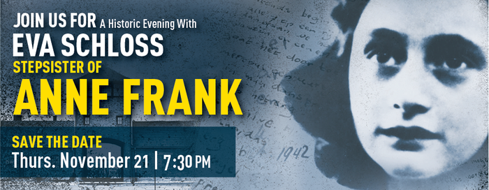 Join us November 21 for A Historic Evening With Eva Schloss at OCCC's Visual and Performing Arts Center. Eva is a Holocaust survivor and stepsister to Anne Frank. Hear her fascinating and painful story of surviving the Auschwitz-Birkenau concentration camp, and how she still believes in the immeasurable power of good.