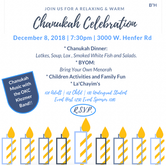 Chanukah Dinner, BYOM (bring your own menorah), Children's Activities, La-Chayims