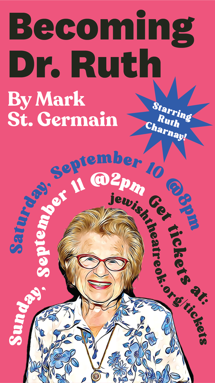 Dr. Ruth Westheimer is most famously known for her pioneering career as a radio and television sex therapist. Fewer, however, know the incredible story of her life before public fame. Becoming Dr. Ruth by Mark St. Germain tells the true story of Karola Ruth Siegel. From fleeing the Nazis in the Kindertransport and joining the Haganah as a scout and sniper, to struggling as a single mother in America, this one-woman show is imbued with humor, honesty, and the life-affirming spirit we have come to love from Dr. Ruth over all these years.