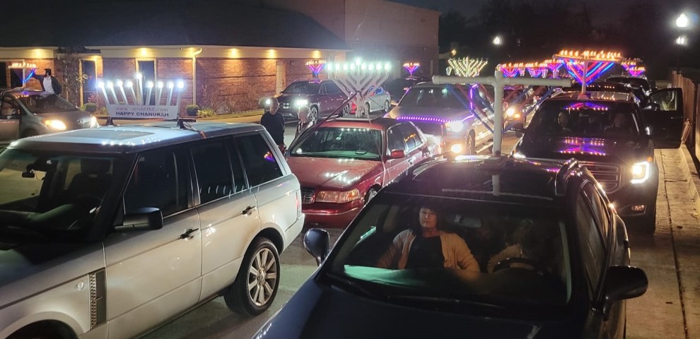 5pm - cars line up at Chabad