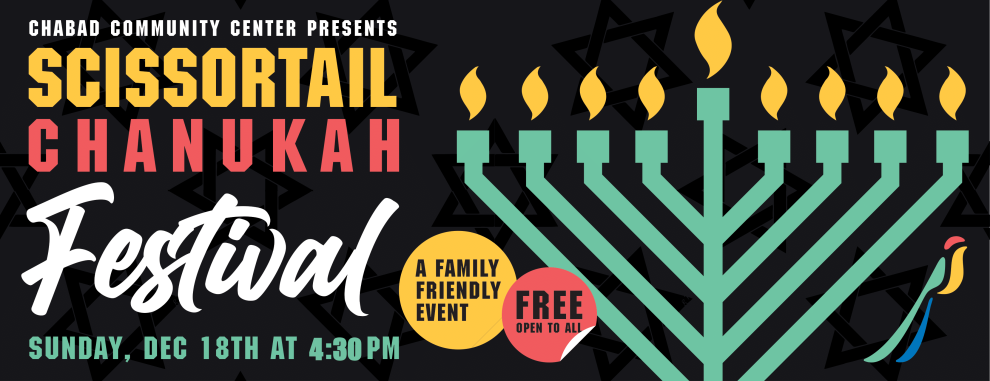 Scissortail Chanukah Festival is an exciting Chanukah program that is free of charge and open to all! Featuring carnival rides, an eight-piece brass band, kosher festival food, exotic animals, a kosher donut food truck, a Chassidic rapper, special entertainment provided by the OKC Thunder, the giant menorah lighting, and much more!